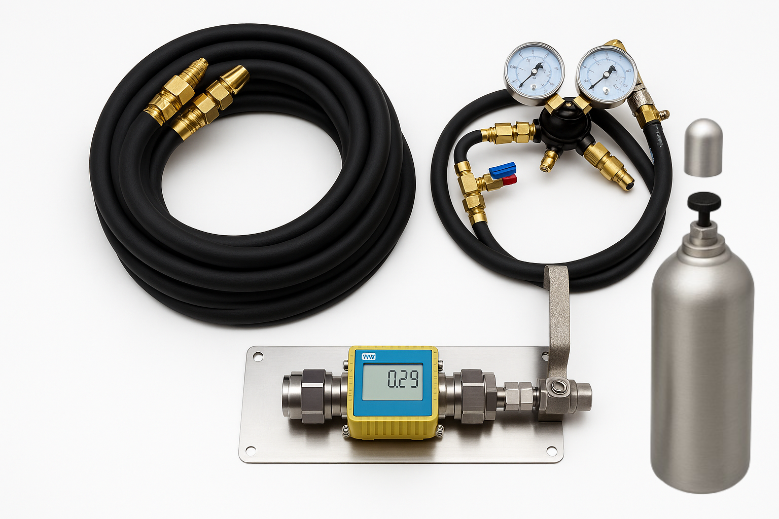 Kit composto por um contador de litros para enchimento do cilindro Unidade Autônoma.